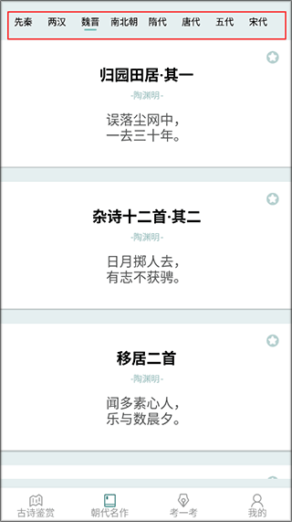 2、点击朝代名作可以观看不同朝代的古诗词。