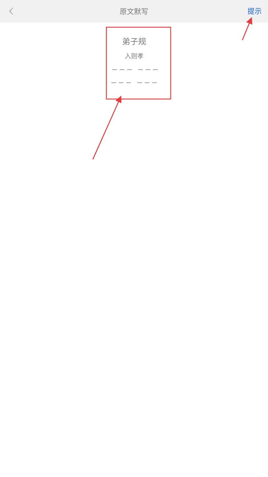 4、默写时,遇困难点【提示】,即会出现下方文字(如“父”)进行提示,根据提示完成《弟子规》语句填写。