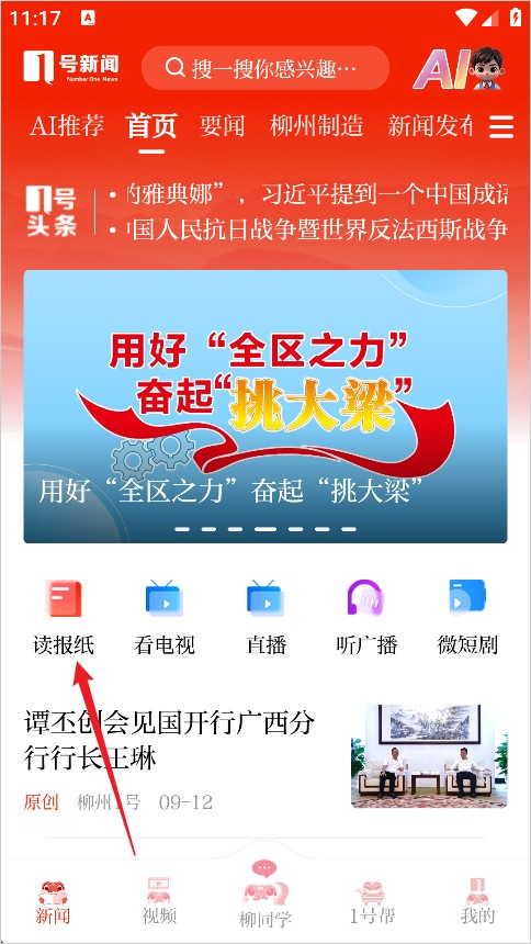 1、进入柳州1号App后在首页位置选择报纸功能