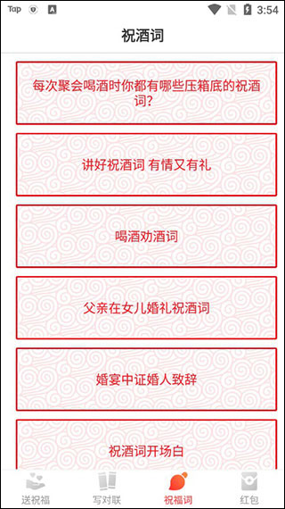 5.用祝酒词:聚会酒会时,快速查找祝酒词,发言更有气势。