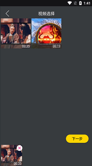 3.选择视频:挑选要去水印的视频,点击【下一步】。