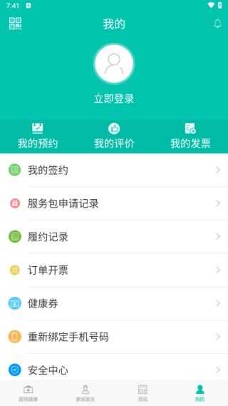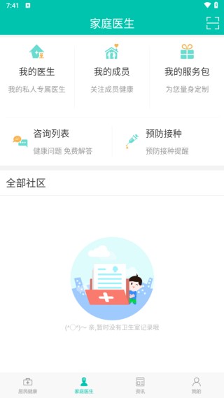 3.家庭医生:在App底部找到“家庭医生”板块,进入后能查看已有家庭医生信息,也能添加新的家庭医生。