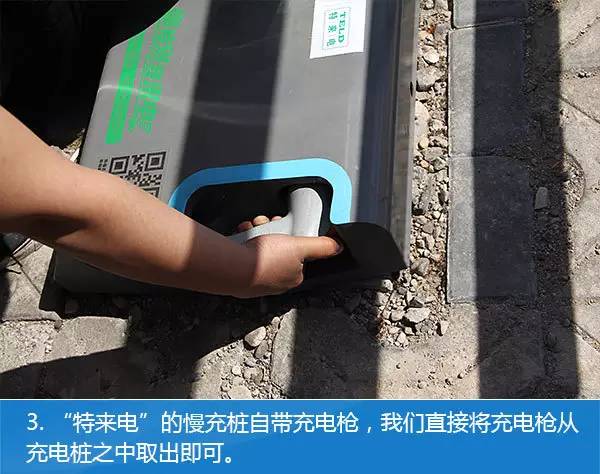 3、特来电的慢充桩自带充点电枪,直接取出即可使用。