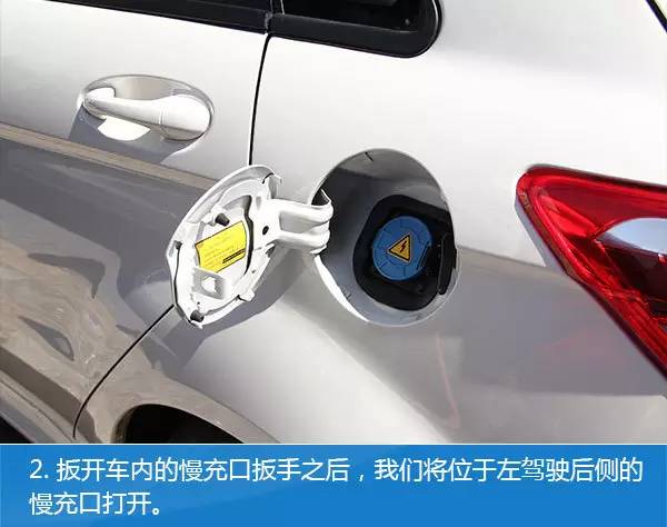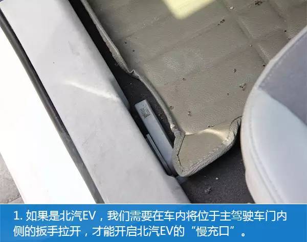 1、首先将位于主驾驶车门内侧的扳手拉开,开启“慢充口”。