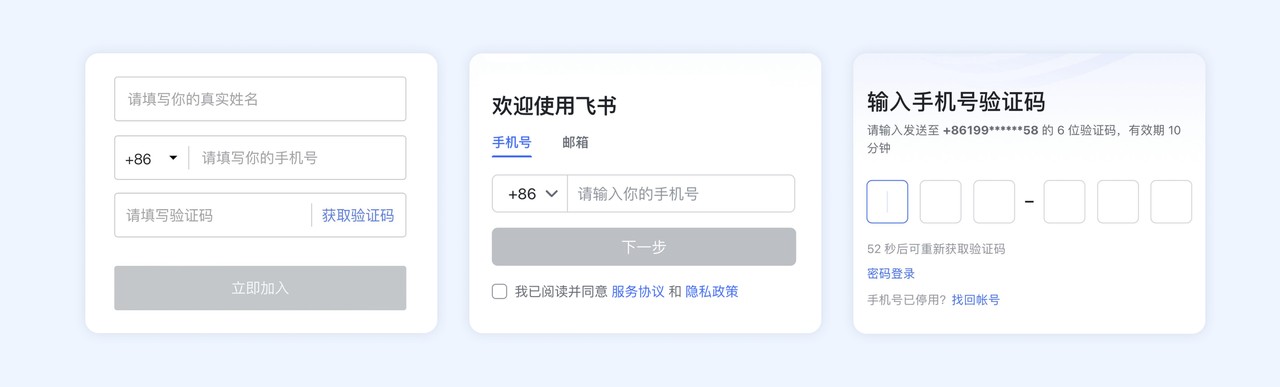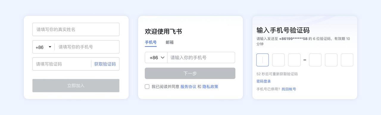 1、打开飞书,输入手机号,下一步输入验证码。
