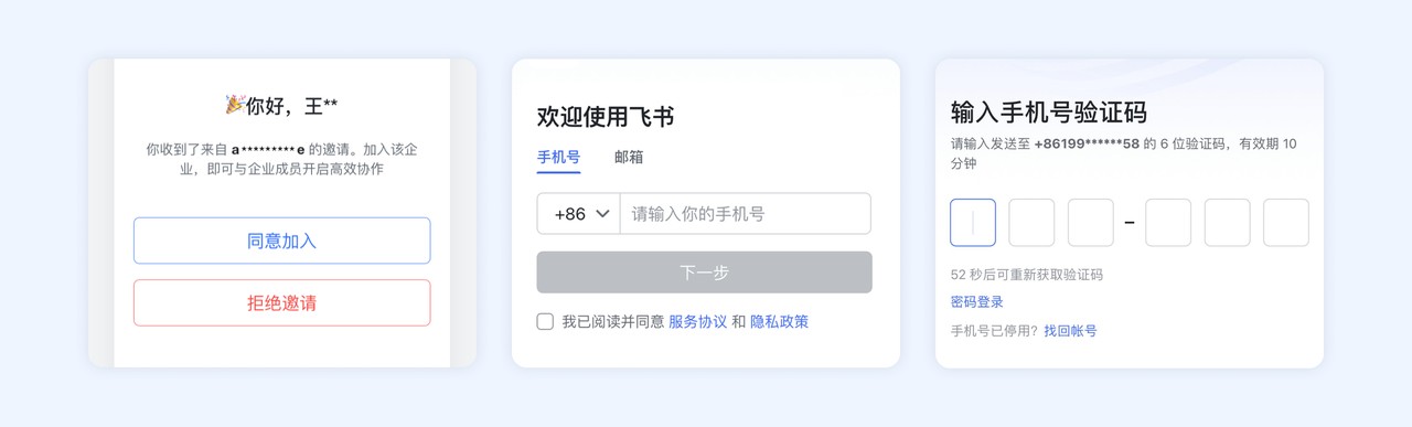 3、使用接收邀请的手机号登录飞书,即可成功加入。
