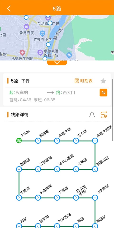 点击目标线路,可查看 时刻表、路线图、首末班车时间 等详细信息。
