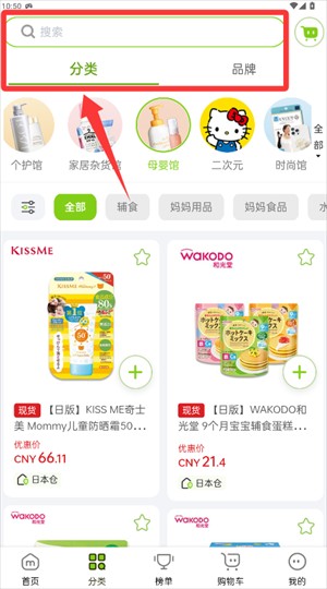 2.定位商品:通过顶部搜索框输入关键词,或从分类/品牌入口快速找到目标品类。