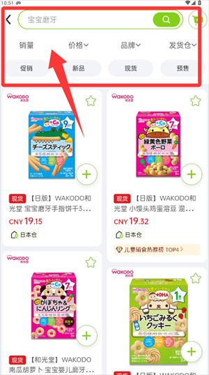 3.筛选结果:输入商品名称后,按销量、价格等条件排序,缩小选择范围。