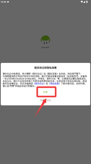 1.启动应用:打开Miaumall App,在协议窗口点击“同意”进入主界面。