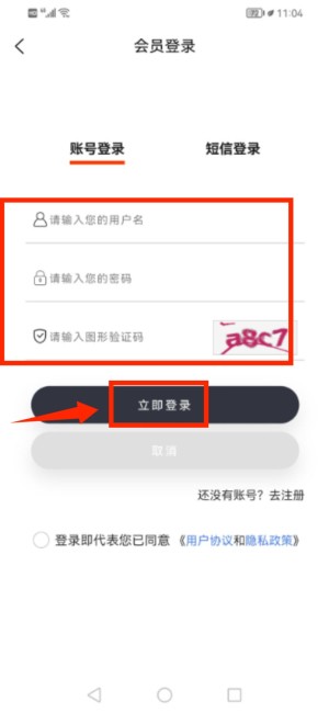打开车捕快App,在登录界面输入账号、密码,填写验证码后点击“登录”。