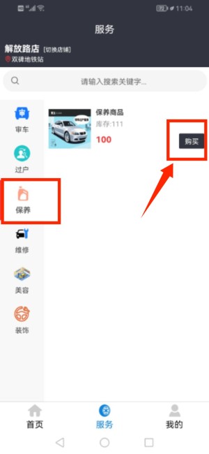 登录成功后,在首页找到并点击“保养”选项,进入保养服务页面。