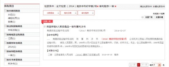 中国裁判文书网的检索结果分别在列表页和全文页展现。