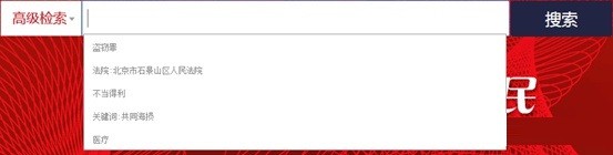 高级检索可以实现多个信息项组合检索。裁判文书网的高级检索中提供全文、案由、案件名称、案号、法院名称、法院层级、案件类型、审判程序、文书类型、裁判日期、审判人员、当事人、律所、律师、法律依据等共计15个信息项的检索,从而实现多信息项组合检索功能。