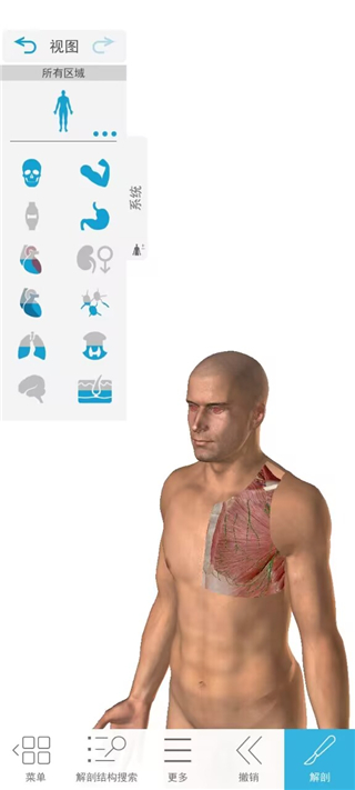 3、观看所有身体系统的结构: 神经、骨骼、循环、肌肉、消化、泌尿、淋巴、内分泌和生殖
