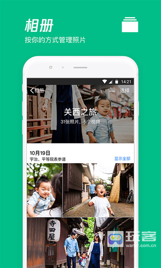 微云可以根据地点、时间、风景、人物等智能分类存储在云端的照片,随心所欲,快速帮你找到最美好的回忆和瞬间!
