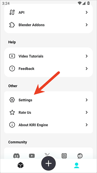1.进入个人设置:打开 App,点击右下角人物头像,进入个人界面后下拉至中部,点击【Settings】。