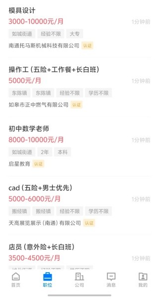 2.名企招聘:汇聚如皋地区知名企业,如思源电气、江苏力星等,提升求职者选择质量。