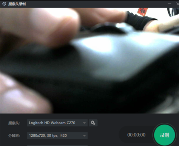 6、录制摄像头:先将摄像头与电脑进行连接,连接好后点击录制摄像头,即可出现摄像头的画面。下方列表是选择摄像头的列表,当有多个摄像头时可在这里切换。分辨率通常是指整个区域的大小,根据自己需求选择合适的分辨率即可,声音可选系统声音或者不录声音。