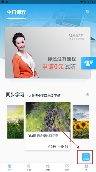 路径:登录后进入「学习」页面 → 右下角点击「扫码解题」→ 对准题目二维码扫描即可获取解析。