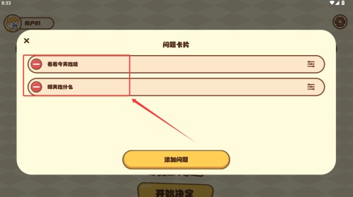 返回问题列表 → 新增的问题会显示在卡片上 → 点击即可选择使用或继续编辑。