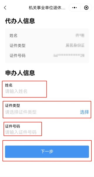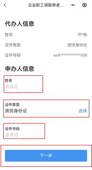 填写信息:输入申办人姓名、身份证号等信息,点击【下一步】。
