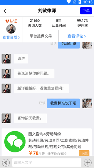 5、随时随时可以在线咨询律师法律问题,任何法律问题都能在此随意咨询;