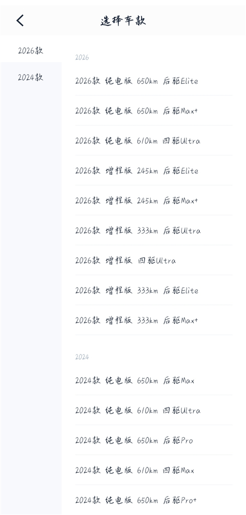 选择车辆品牌及细分车型类别(如轿车、SUV)。