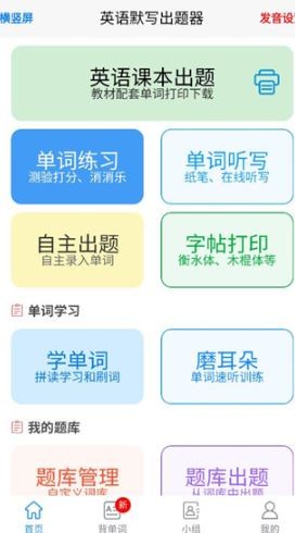 首页点击“课本出题”,选择单词出题、下载或打印,轻松搞定纸质练习。