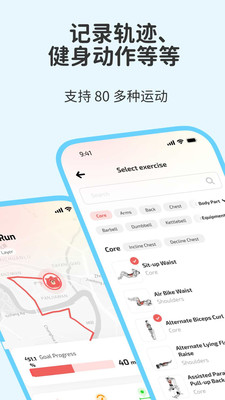 支持80+种运动类型(跑步、骑行、健身等),自动同步Apple Watch、Health Connect等品牌手表数据。