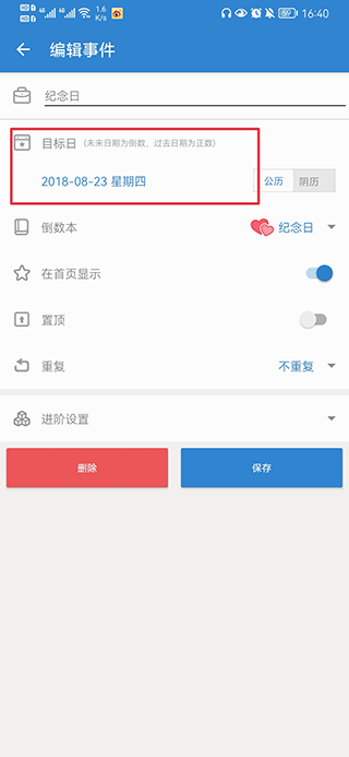 2、重要日期醒目置顶支持,支持时间远近排序