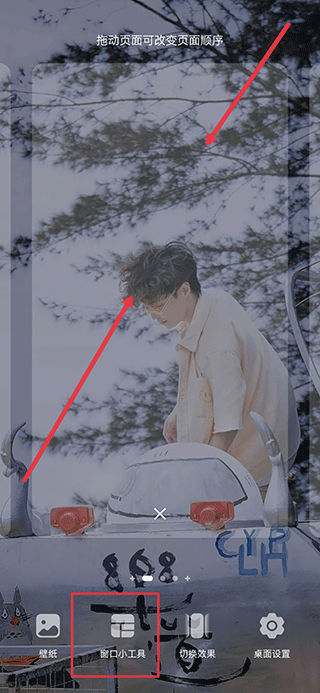 1、首先回到手机桌面上,两指向手机屏幕中间捏合,然后点击下方窗口小工具