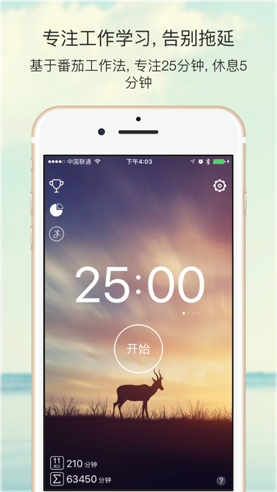 标准番茄钟:默认25分钟专注时间+5分钟休息时间,用户可自定义时长,灵活适应不同场景需求。