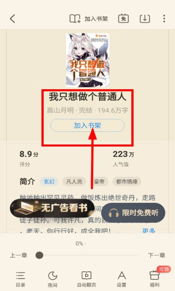 3.选本小说进详情页,点【加入书架】就成。
