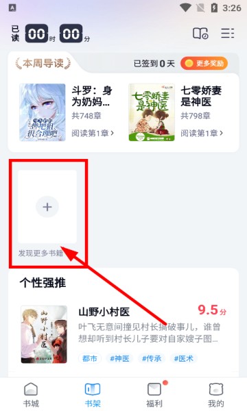 2.点击界面【+】找书;