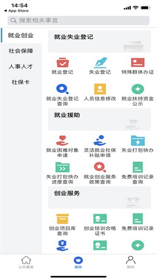 3.登录后主页能看到一些社保认证相关功能;