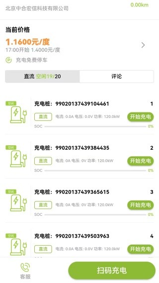 4.选定充电站后,大家可查看当下的充电价格,确认无误后,挑选充电桩并扫码开启充电。