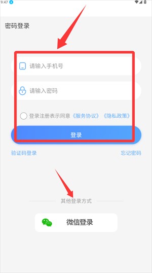 1.想快速登录大本营家政 app,先在服务协议和隐私政策处点同意
