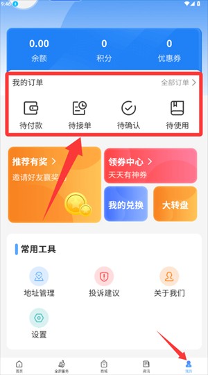 3.登录后还能在“我的订单”页管理待付款、待接单等订单状态。