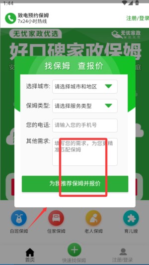 1.首先,在本站中下载无忧家政 app,完成注册登录并填好个人资料,这样系统能更精准推荐家政人员。