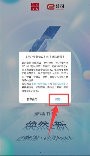 1.先打开 app,在弹出的用户服务协议和隐私政策提示框里点击“同意”完成准入;