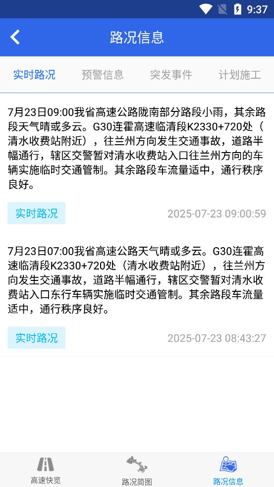 2.在这能查看甘肃高速全路况,像高速快览、路况简图、路况信息都有。