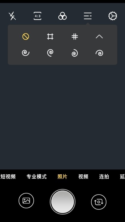 1、首先我们打开相机,然后在这里点击上方的三个横线图标,在这里选择网格功能。