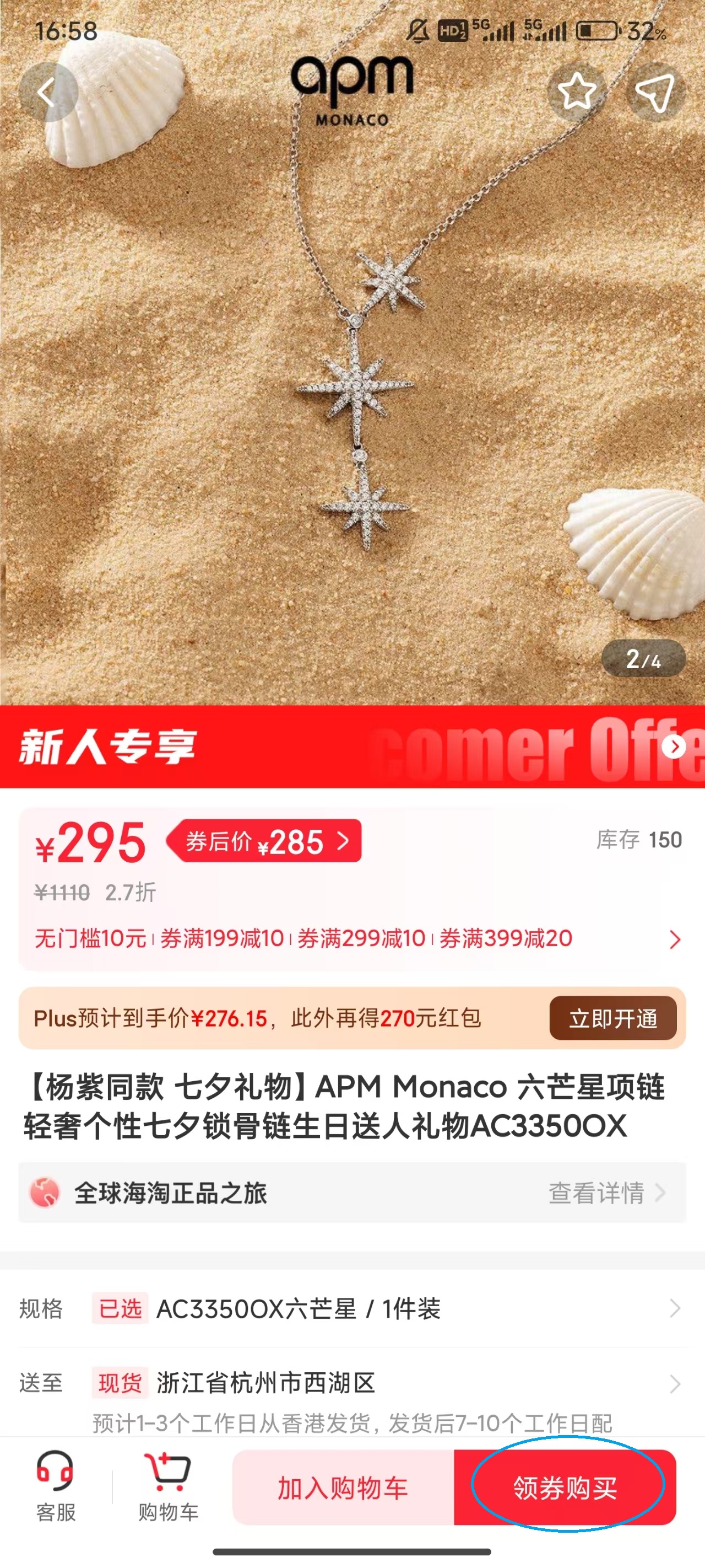 4、点击屏幕右下角处的“领券购买”按钮。