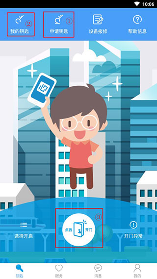 3.登录后选“申请钥匙”,添加要用的门禁设备。