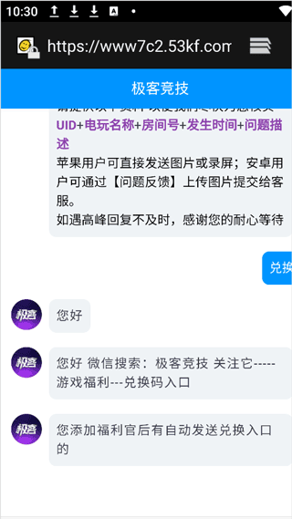 2、然后打开客服界面后问客服要兑换码