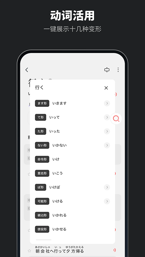2、智能化学习辅助,动词活用一键查看,简化日语学习中的难点,智能推送与定制化学习定制单词推送,支持自定义词单和背词计划。