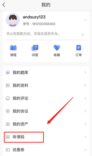 3.在个人中心点“听课码”,到激活界面;