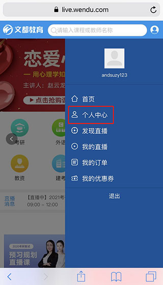 2.登录后,再点右上角用户图标,进个人中心;