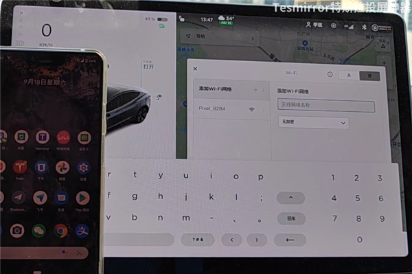 5、最后特斯拉屏幕上就会实时显示手机画面了。